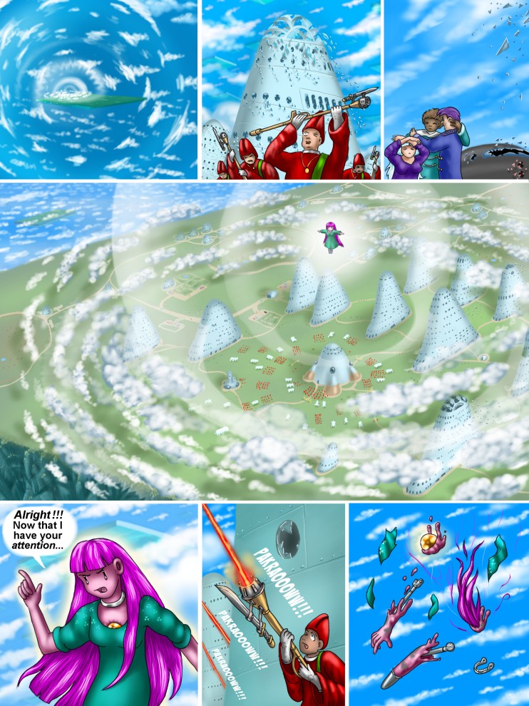 Her first attempt was to get their attention in order to talk them out of their attack. Oops. But after Chartreuse, Heliotrope doesn't want to hurt anyone again.