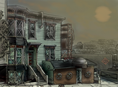 "Hi, Dirk! Good to see the corp cops haven't roasted your buns yet." She raised her open palm and he slapped it eagerly with the back of his hand.